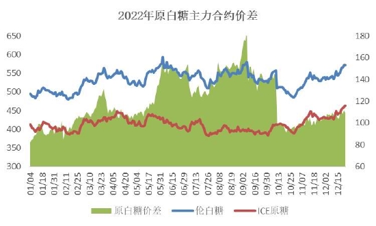 图2:2022年原白糖主力合约价差 单位:美元/吨