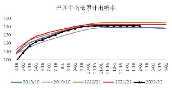 2022/23年度巴西甘蔗压榨已基本结束,甘蔗和糖产量较上个榨季小幅增长,预计最终糖产量为3350万吨左右。巴西甘蔗行业协会(Unica)最新数据显示,2月上半月巴西中南部地区压榨甘蔗30.7万吨,去年同期为0;产糖1.7万吨,去年同期为0;乙醇产量同比增加29.09%,至2.13亿升。糖厂使用43.13%的甘蔗比例产糖,上榨季同期为0。2022/23榨季截至2月16日中南部累计压榨甘蔗5.42395亿吨,同比增加3.98%;累计产糖3350万吨,同比增加4.6%;累计产乙醇278.87亿公升,同比增加3.74%。