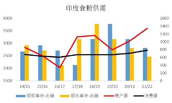 图13:印度食糖供需 单位:万吨