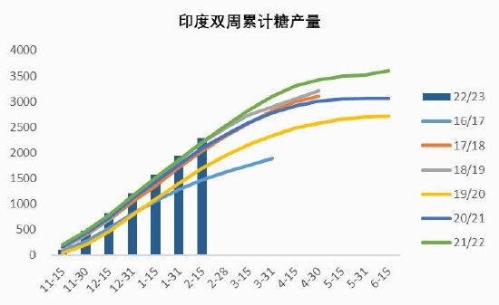 图14:印度双周累计食糖产量 单位:万吨