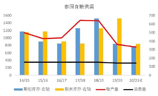 图15:泰国食糖供需 单位:万吨