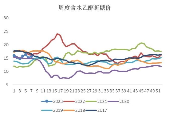 图17:周度含水乙醇折糖价 单位:美分/磅
