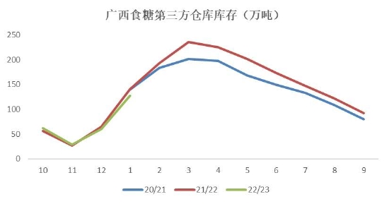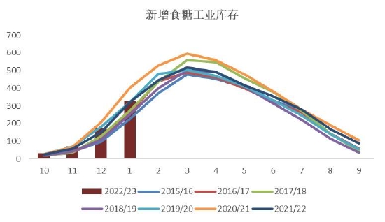 自去年年底疫情优化管理后,各地感染人数增多、社会面人员流动有限,影响了经济生产正常运转,叠加此前受疫情影响市场消费持续疲软,大部分食品厂对食糖采购意愿下降,主要以消化库存为主,部分工厂甚至于去年年底就停工放假,生产处于停滞状态。