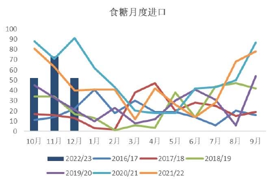 图22:食糖月度进口量 单位:万吨